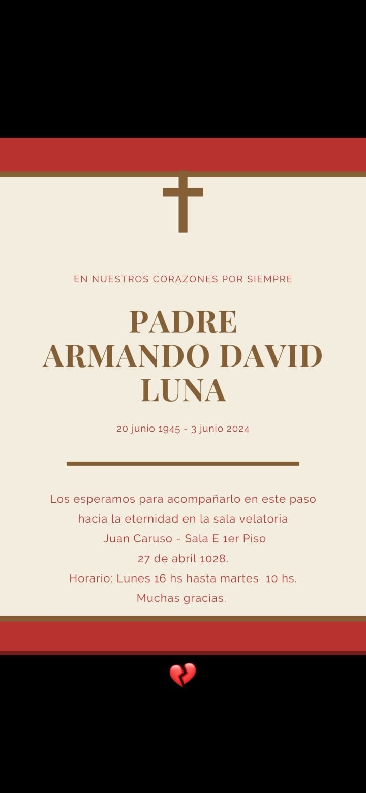 FALLECIÓ EL PADRE ARMANDO LUNA