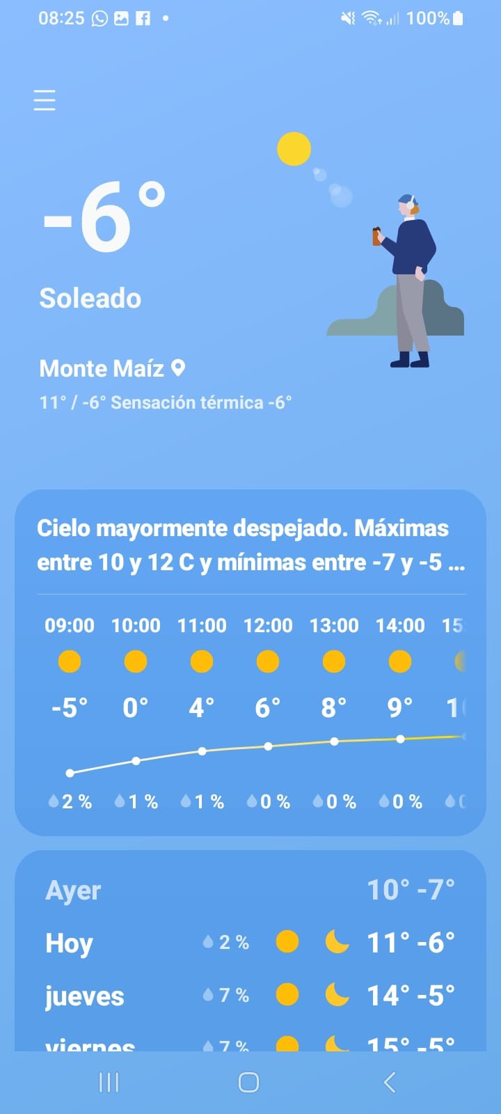 LA MÍNIMA MARCÓ -7C DURANTE ESTA MADRUGADA Y LA MAÑANA