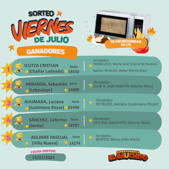 ¡Otro Viernes de buenas y felices noticias para muchos participantes de la edición 2024 del Gauchito! ¡Mirá los premiazos que sorteamos!