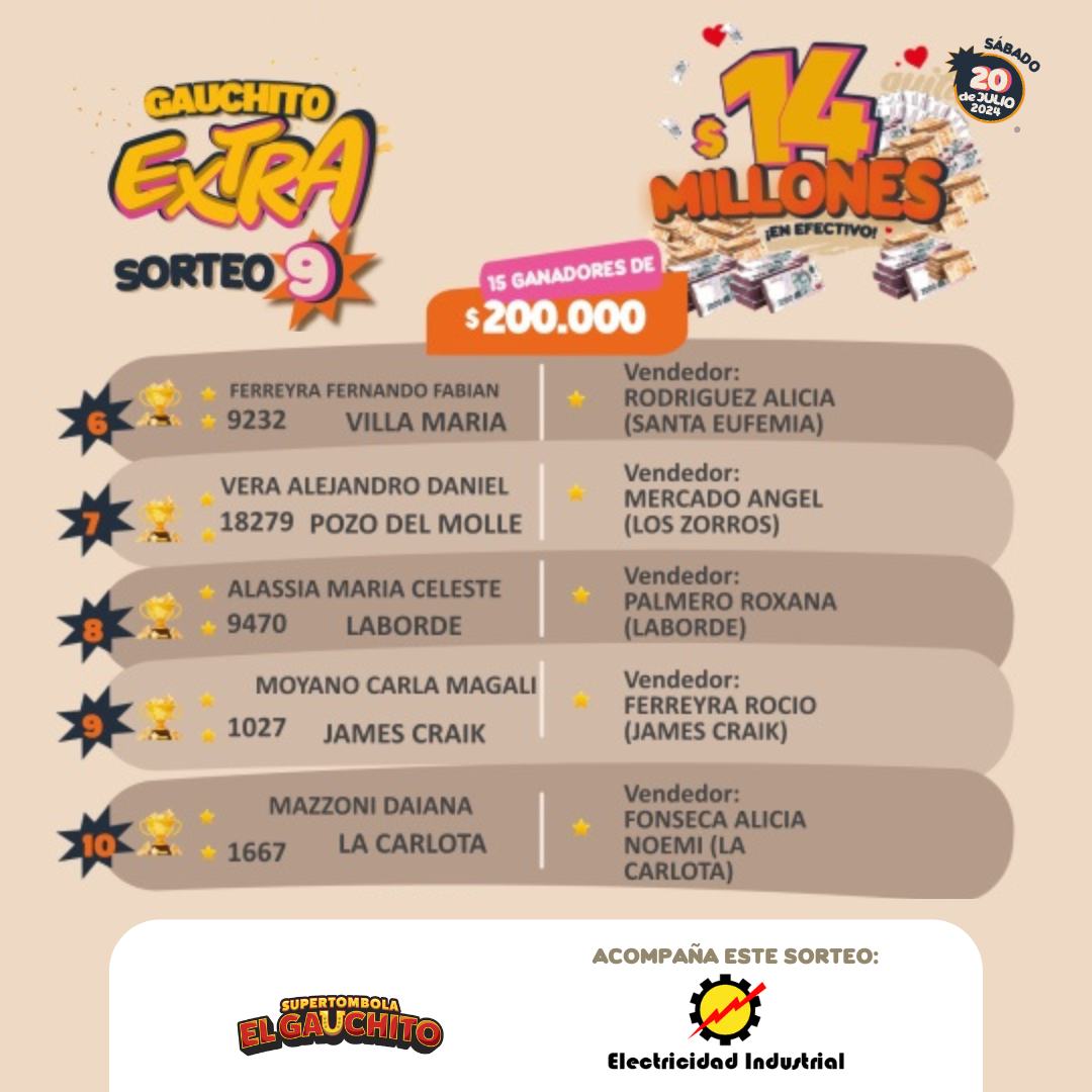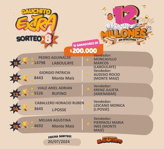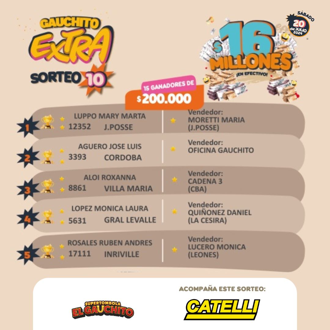 MÁS GANADORES DEL GAUCHITO EXTRA