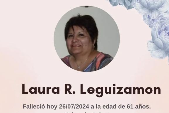 Se conoció en la mañana de este viernes la triste noticia del fallecimiento de la Prof. Laura Leguizamón a la edad de 61 años, quien se jubilara como Directora del CENMA Nº196 de nuestra localidad.