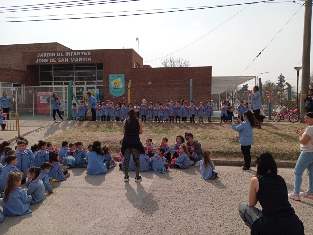 En el Jardín José de San Martín, hubo además un despliegue de baile y gimnasia que estuvo guiado por las Prof. de Zumba Daiana Castro y Yamila Settembrini. Cada una de las salas usó la vereda de escenario para presentar sus destrezas artísticas a familiares y público en general y fueron guiados por las Seños de cada salita.