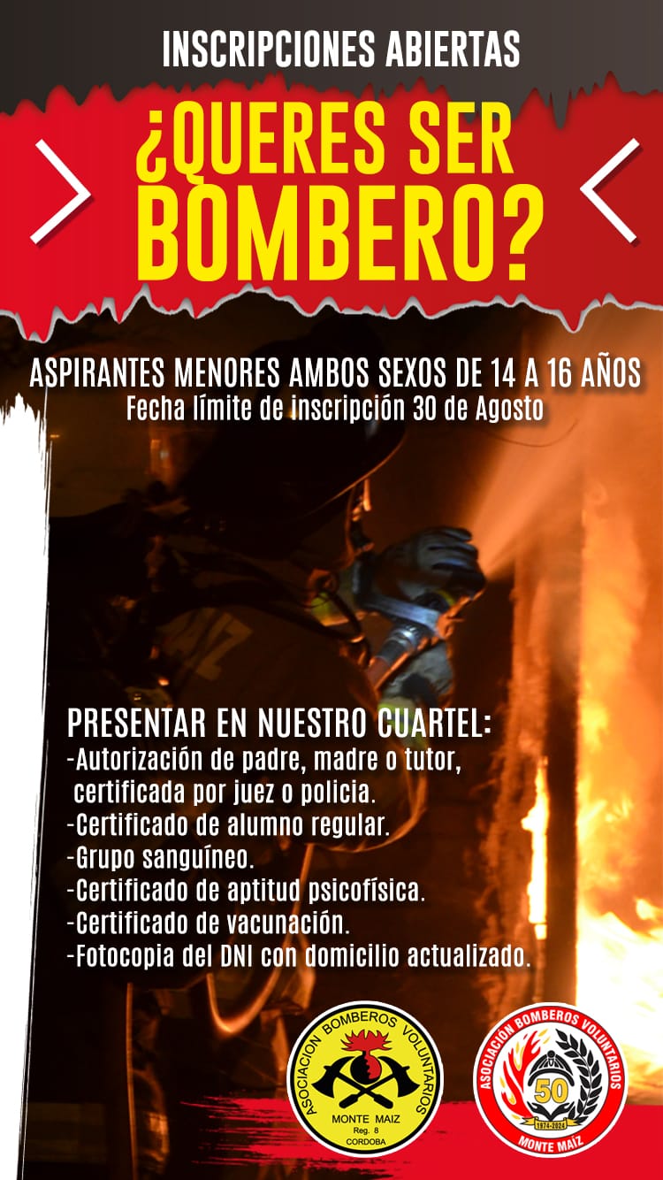 INSCRIPCIONES ABIERTAS PARA ASPIRANTES A BOMBEROS