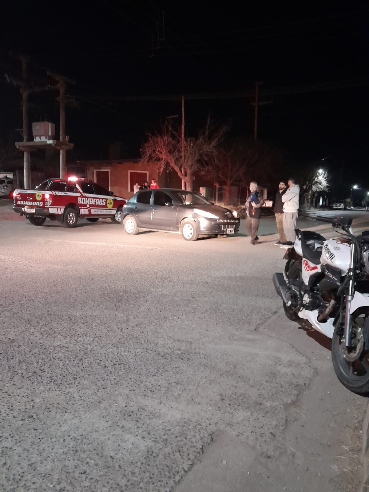 El automóvil, un Peugeot 207, era conducido por Federico Acuña- En tanto, la moto, Marca Benelli 150 c.c. era conducida por Elías Bomberger.