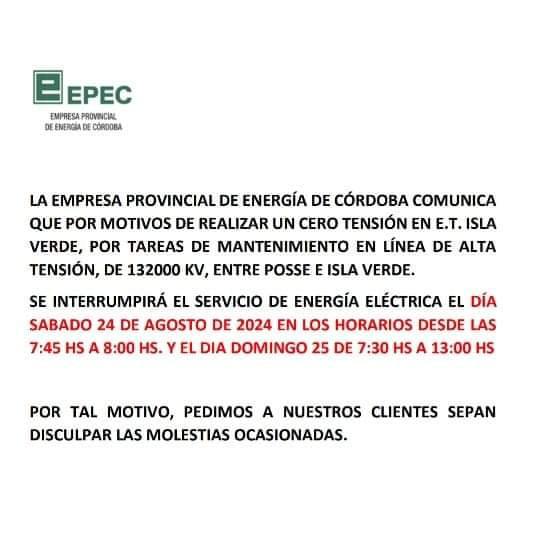 EPEC NORMALIZÓ EL SERVICIO ELÉCTRICO EN MONTE MAÍZ