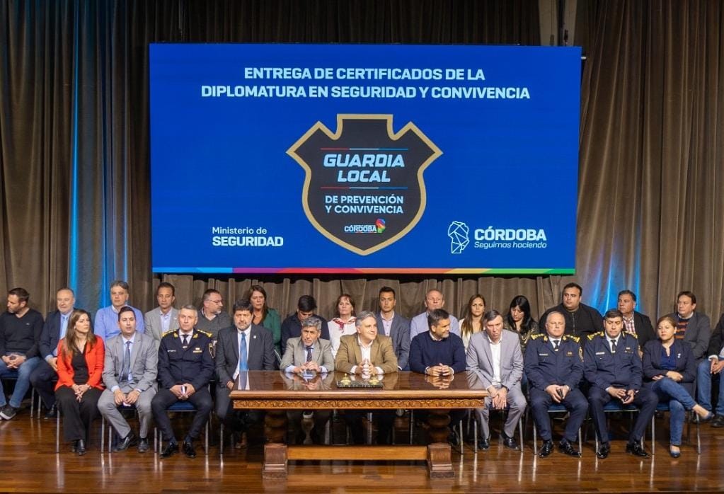 El gobernador Martín Llaryora entregó los certificados a quienes ya finalizaron la capacitación prevista por la ley de Seguridad Pública y Ciudadana.