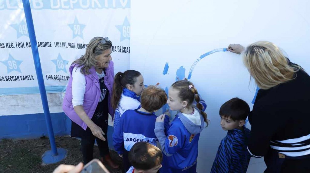 En ese marco, y dentro de algunas actividades que contemplaba la visita, niños, socios y simpatizantes, pintaron un mural en el estadio Modesto Marrone e hicieron algunas manualidades.