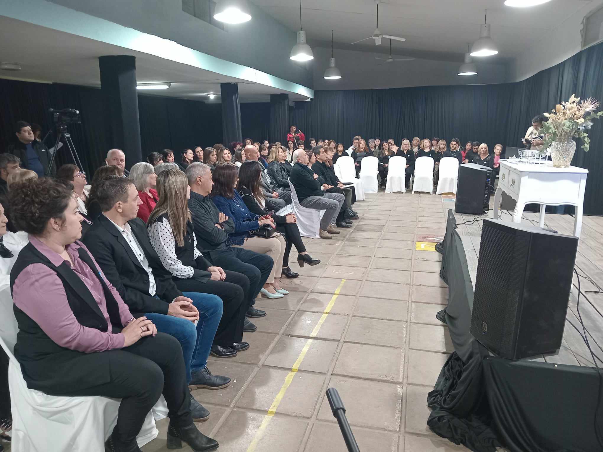 Se contó con la presencia de autoridades municipales, el Dr. Luis Trotte, Intendente; Vanesa Pascual, Secretaria de Haciebda y Finanzas y Esteban S{anchez, Secretario de Cultura. Además asistieron directivos y exdirectivos; docentes y exdocentes; alumnos y exalumnos, y directivos de oras instituciones educativas y civiles de la localidad.