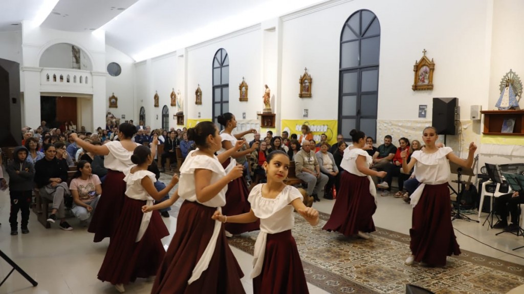 El templo lució a pleno y el pueblo pudo disfrutar de la actuación del grupo anteriormente mencionado, quien estuvo acompañado por la Escuela de Música y Banda Municipal y el Taller de Danzas folclóricas infantil.