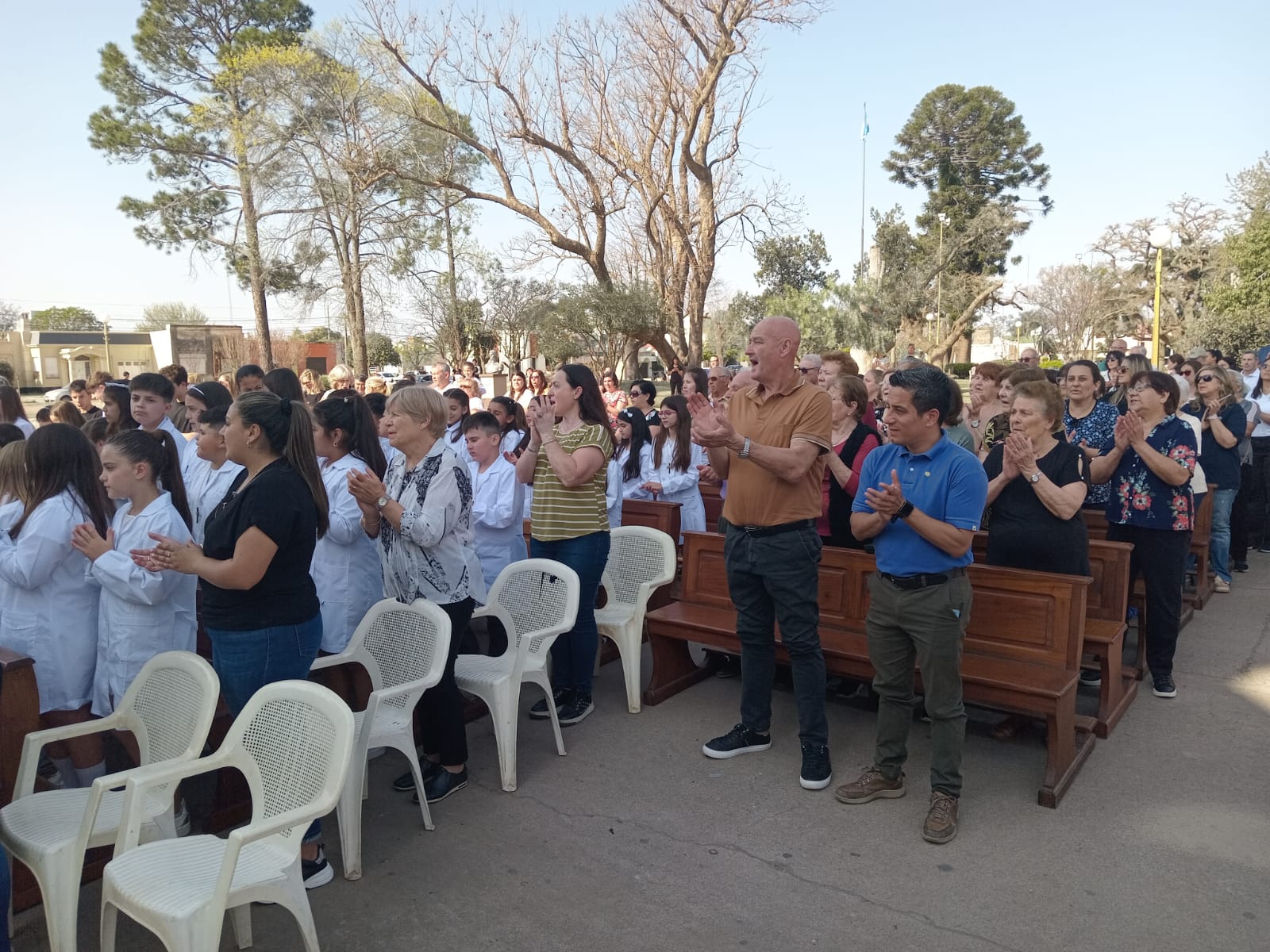 Hubo tortas y chocolate para todos, gracias al trabajo de catequistas e integrantes de grupos parroquiales. Y luego, se hizo una caravana por el pueblo con los chicos de la Primera Comunión y sus familias.
