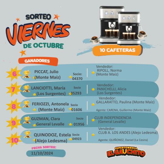 MÁS GANADORES DE OCTUBRE