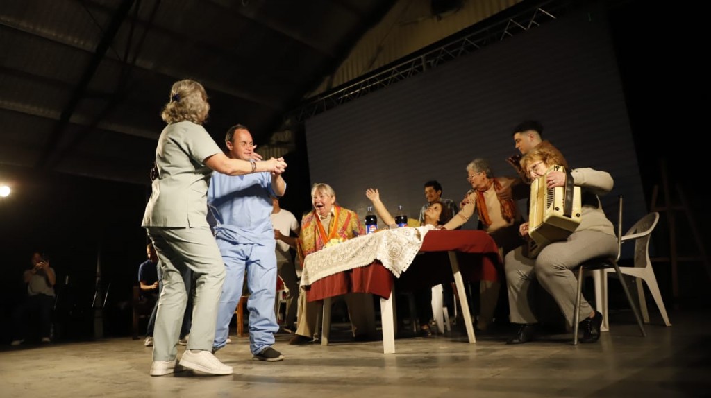 Son 20 personas en escena: Darío Aranda, María Belén Barón, Juan de Dios Busandri, Naím Clas, Sonia Cristina Días, Soraya Dichiara, Jimena García, Norma Huber, Nora Isuardi, Gonzalo Pinardi, Nora Pognante, María Rapachani, Dayana Retamal, Liliana Ripoll, Miguelina Romani, Gladys San Martín, Celeste Tejada, Jimena Ojeda, Ramiro Urquiza, Carlos Vottero, Santino Yppólito, y Oscar Zeballos.