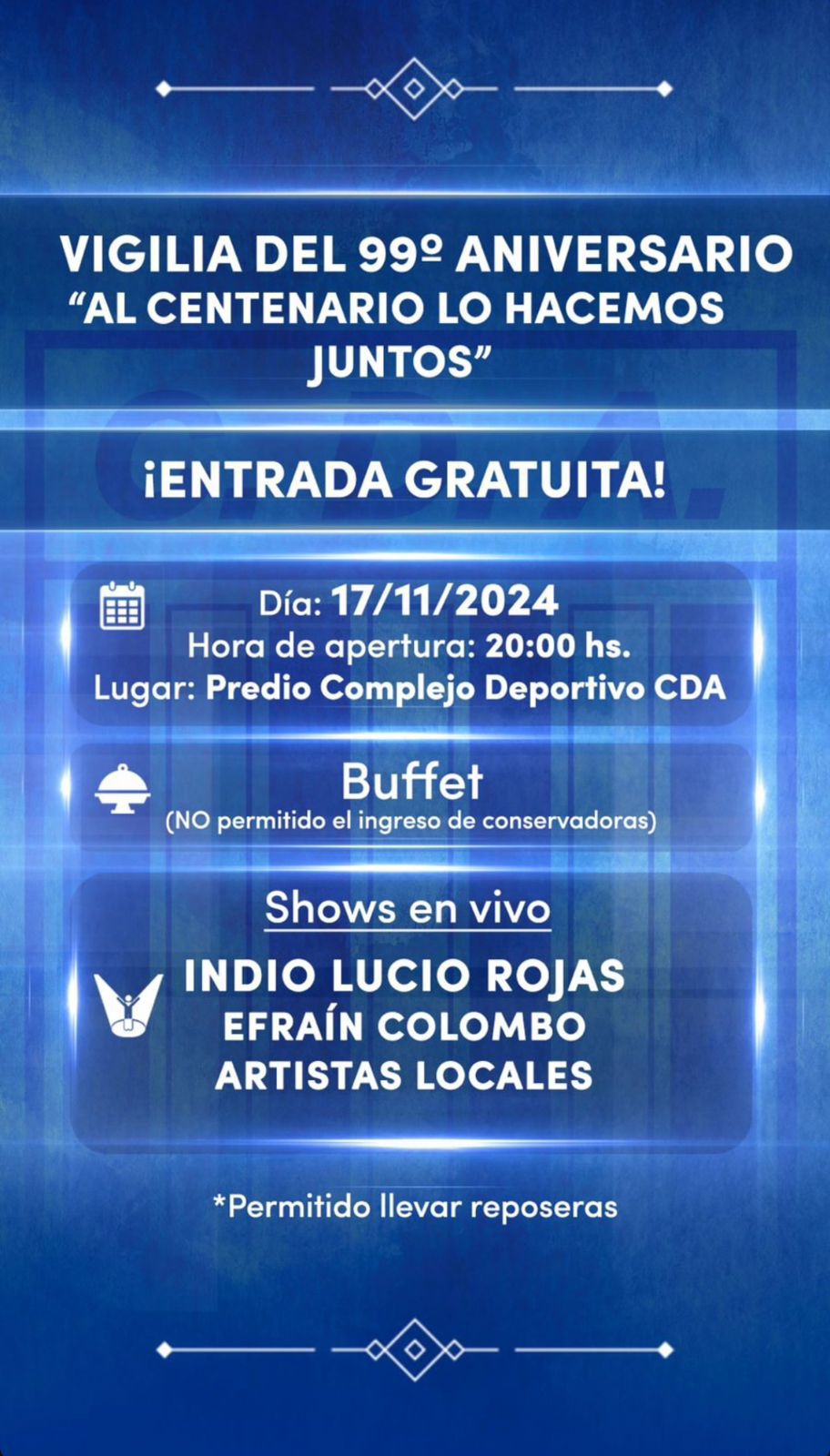 Explicó también el dirigente que que el predio se abrirá el 17 de noviembre a las 20 hs. y que habrá muchas sorpresas de las cuales no pudo adelantar nada.