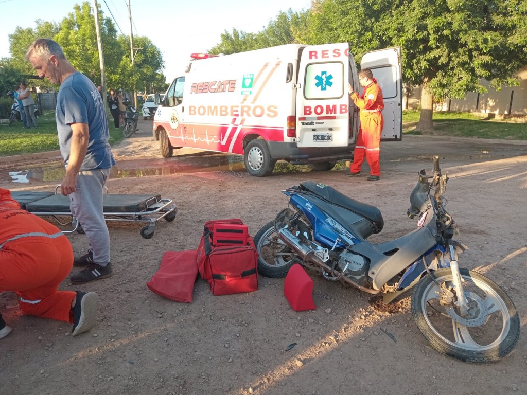 A las 18:40 hs.de este sábado, por causas que se tratan de establecer, colisionaron una moto con una camioneta Marca Isuzu. El siniestro se produjo en la intersección de las calles Mendoza y Río Negro de Bº Gobato. Personal de Bomberos debió asistir en el lugar a dos mujeres, mayores de edad, quienes sufrieron politraumatismos por la caída. Luego de haber sido estabilizadas fueron trasladadas para control al Hospital municipal. El conductor de la camioneta, único ocupante de la misma, no sufrió lesiones. La moto circulaba por calle Río Negro, de sur a norte y la camioneta lo hacía por calle Mendoza de este a oeste. La moto habría impactado en el lateral del conductor en la parte delantera de la chata.