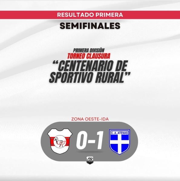 Atenas venció 1 a 0 a Rural en Etruria por la semifinal de ida de la zona oeste, el partido fue reanudado luego de que el domingo se suspendiera a los 12 minutos del segundo tiempo.
