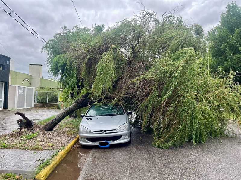 En Leones hubo calles anegadas y un veterano de guerra de esa ciudad sufrió importantes daños materiales en su auto. El vehículo estaba estacionado al frente de su casa y un árbol cayó sobre el techo del rodado.