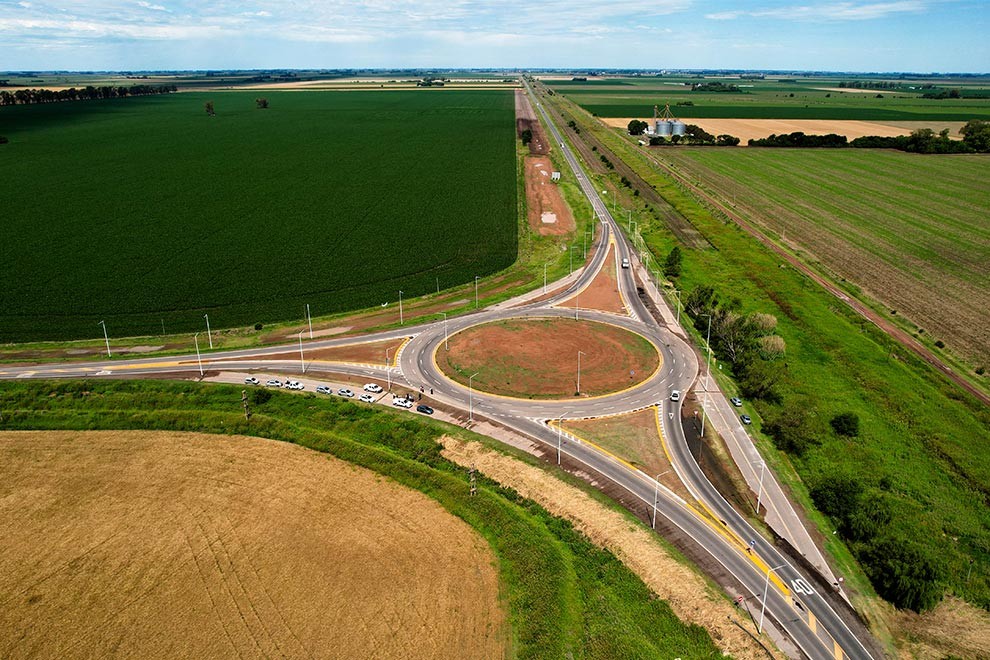 La nueva rotonda tiene un diámetro de circulo inscripto de 80 metros y tres ramas de acceso con cantero central, señalización vertical y horizontal; y la colocación de tachas retroreflectantes y chevrones en las curvas.