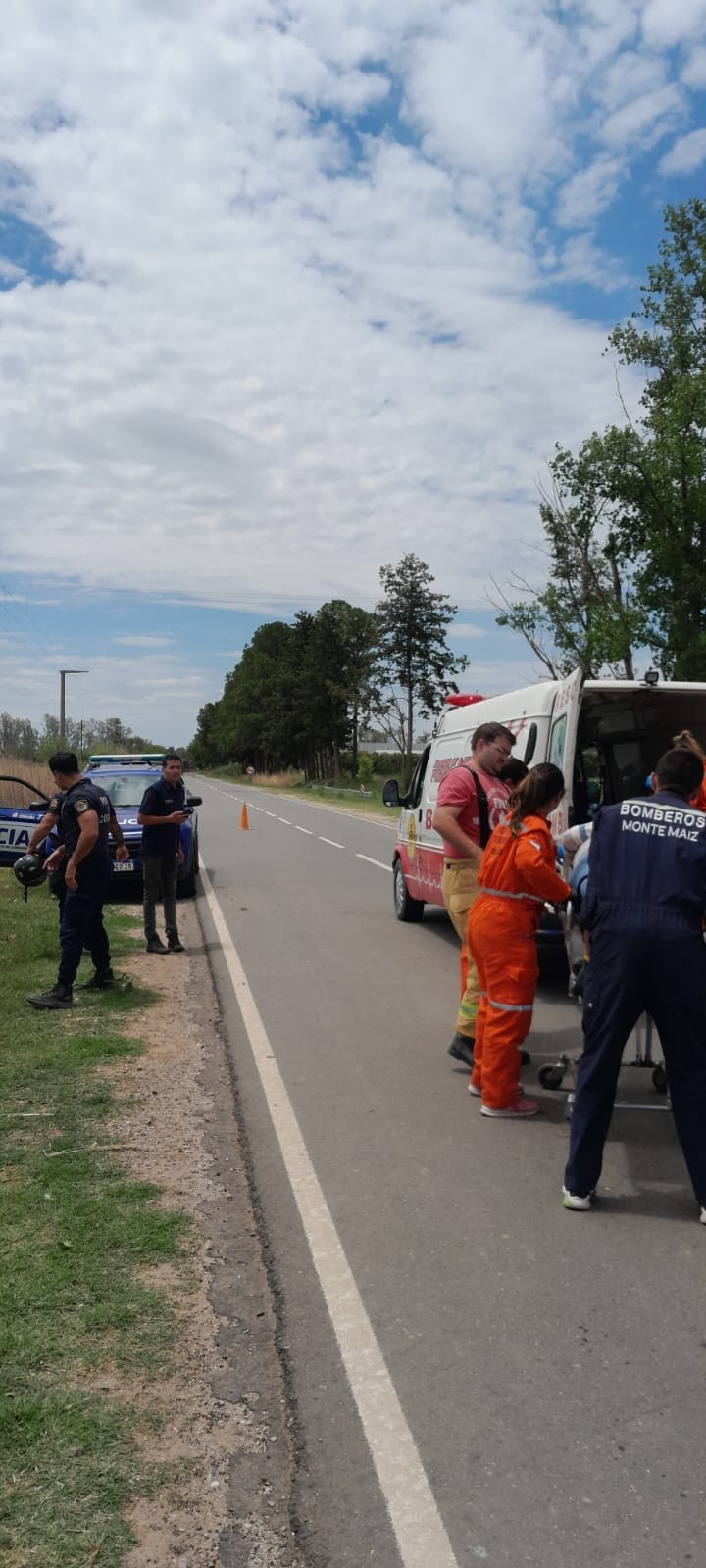 A las 13:52 hs. de este domingo, Bomberos Voluntarios de Monte Maiz debieron asistir a dos motociclistas que sufrieron una caída en solitario en la ruta que va a Colonia Barge, a unos 700 mets del ingreso a Monte Maíz.