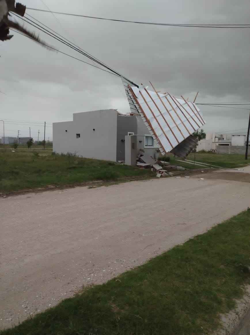 Durante la tormenta de viento de esta tarde se produjo al menos la voladura de un techo en barrio Carlos Gabaglio, ex Ivecor.