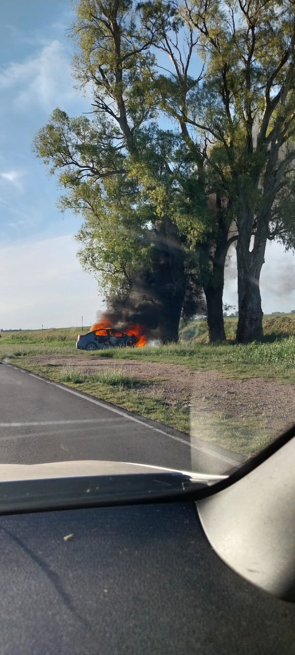 En el lugar, se encontraron con un automóvil, que había chocado con uno de los árboles, incendiándose de inmediato.