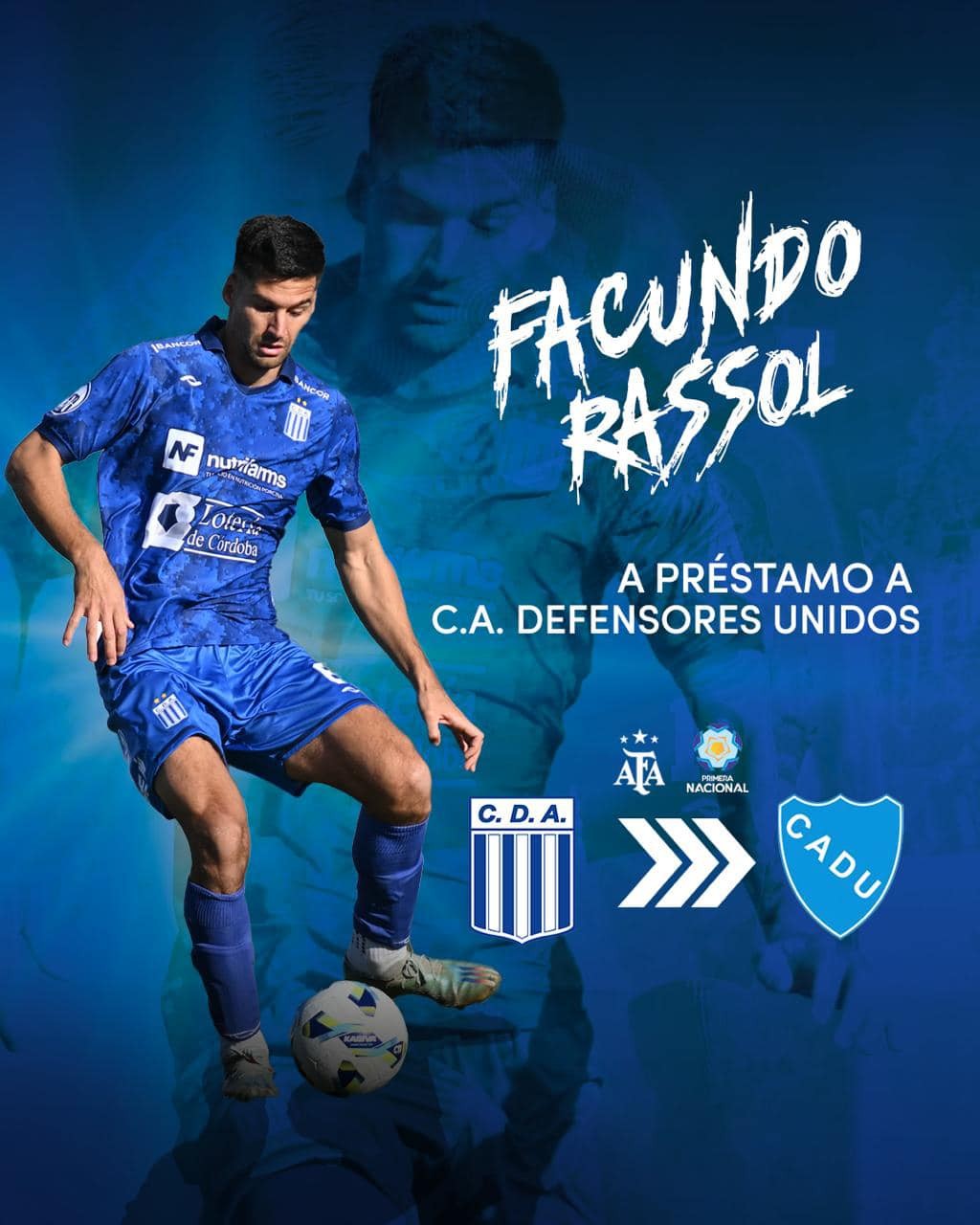 Facundo Rassol, marcador central de Argentino, se va a préstamo a un club que estará jugando en esta temporada en la Primera Nacional, segunda división del fútbol argentino.