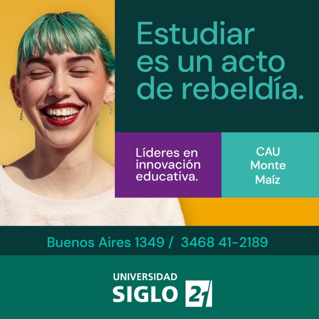 Monte Maíz, 20 de enero 2025. Siglo 21, la Universidad privada federal más elegida por los argentinos, informa que se encuentran abiertas las inscripciones para el próximo inicio de clases de marzo 2025.