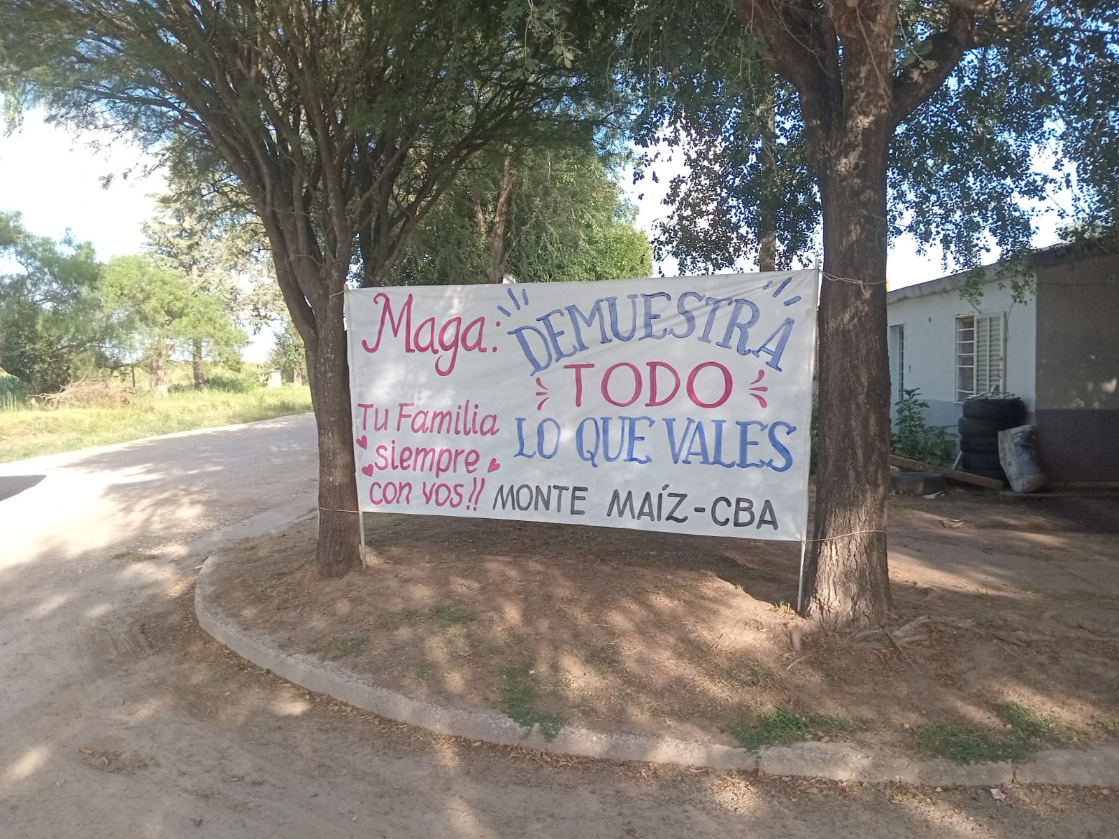 En su casa de Bº Laudi, la esperaba un hermoso pasacalles con un mensaje de felicitaciones por tan importante logro.