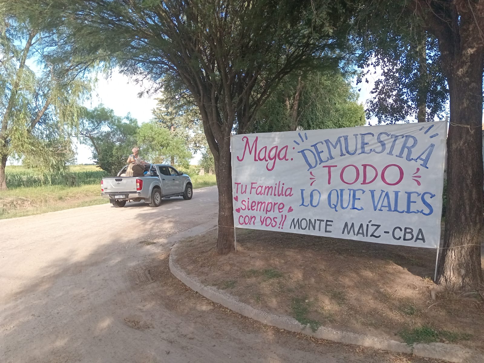 A su llegada a la localidad, el domingo por la tarde, un gran número de amigos, familiares y público en general la esperó en la rotonda oeste para acompañarla en caravana hasta su casa, previa recorrida por el Centro y por los barrios de Monte Maíz. Muchos vecinos salieron de sus hogares a saludar y aplaudir a Magalí.