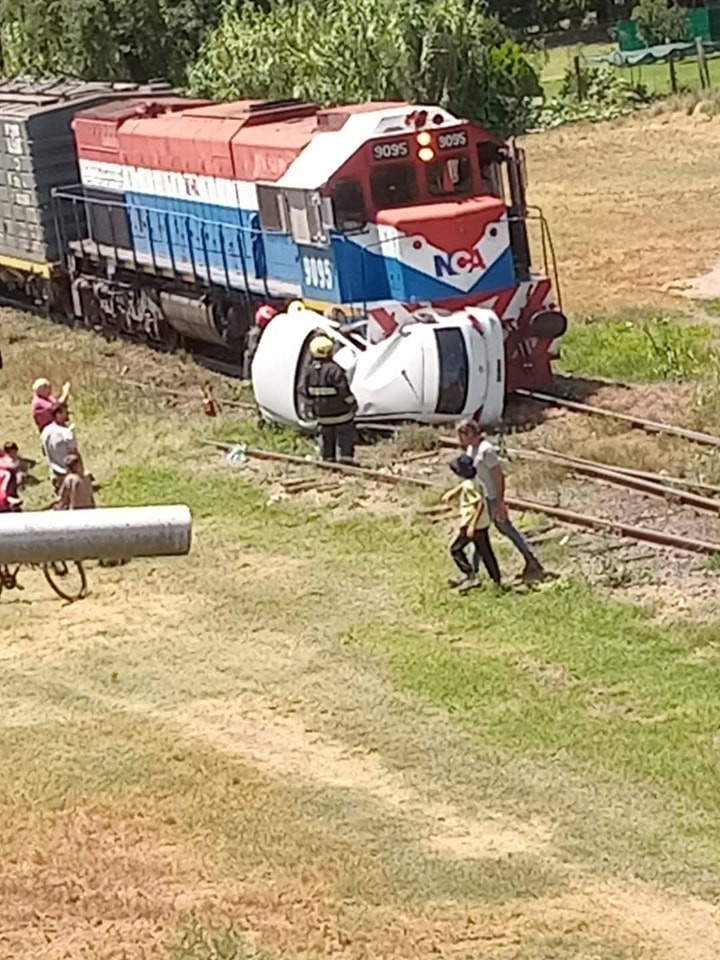 Siendo  las 11:15 hs, convocan a Bomberos Voluntarios por un accidente, cuando un tren arrastró un automóvil por aproximadamente 100 metros.