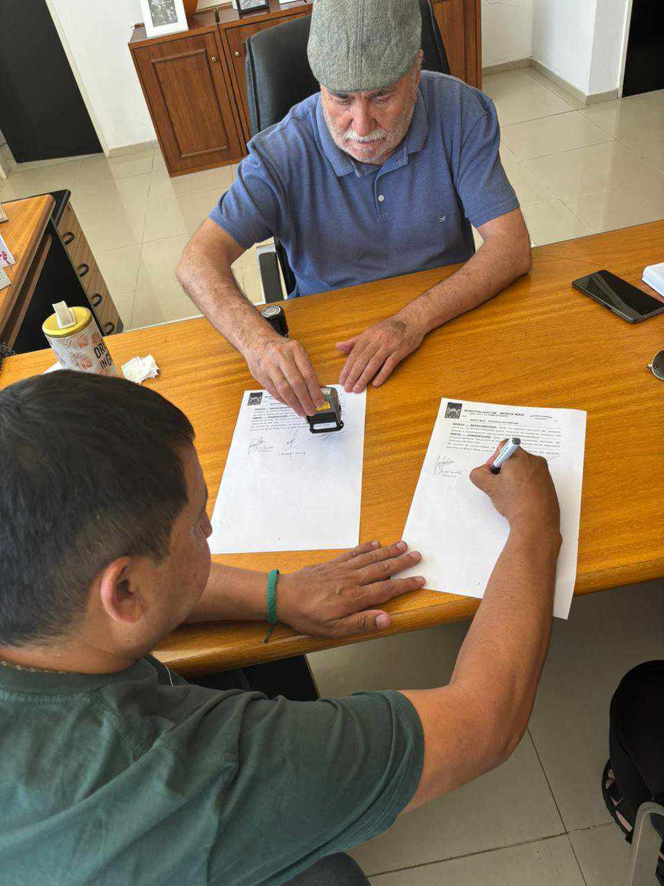 El convenio se firmó con representantes de la institución, la Prof. Jésica Sueldo, Estefanía Paparelli, Paulina Storani y autoridades municipales tales como el Intendente, Dr. Luis María Trotte; la Contadora Vanesa Pascual, Secretaria de hacienda y Finanzas; y el Presidente del Directorio de la empresa Gas de Monte Maíz S.A. Ignacio Silva, ya que la empresa de servicios local es la administradora del espacio cedido.