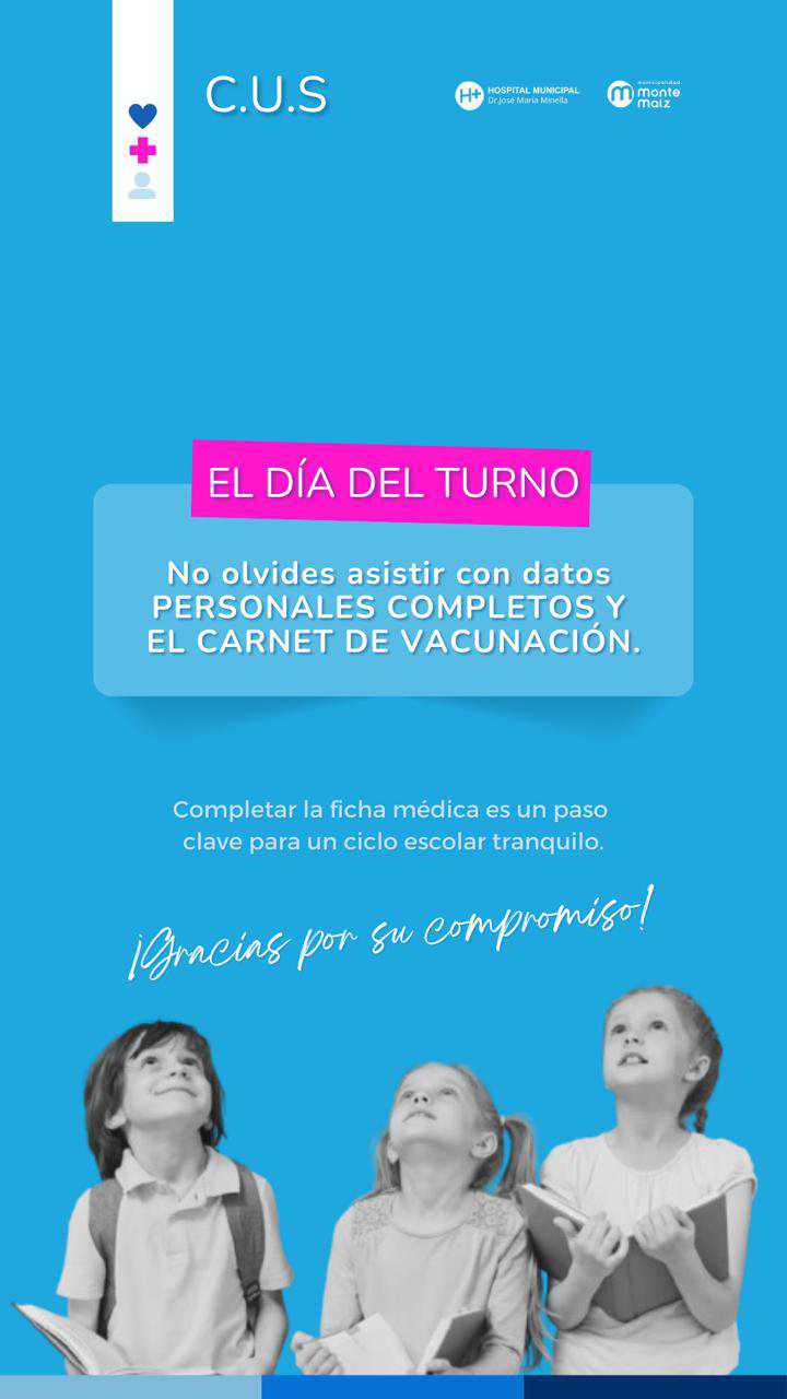 Y agregó: "Los alumnos que no son ingresantes, tienen que venir con el CUS que ya dejaron en la escuela, para que el personal médico llene la parte de atrás de la documentación donde están las renovaciones. A los que ingresan a nivel inicial, primario o secundario, se le hace la ficha completa".