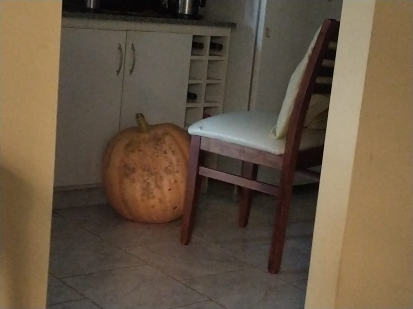 Un productor rural de Colonia Bismarck, radicado en Monte Maíz, Mayco Agatiello, cosechó un zapallo de 55 kgs.