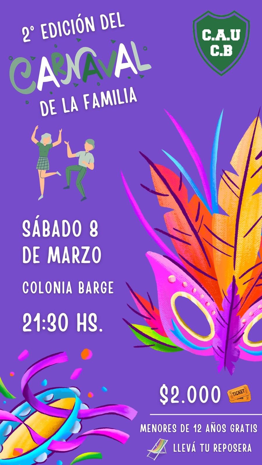 Este sábado 8 de marzo se realizará la segunda edición del Carnaval de la familia en Colonia Barge.