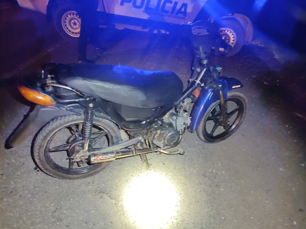 Personal policial procede a la aprehensión de un masculino mayor de edad (20), tras constatar la infracción a la ley 10.326, durante patrullaje preventivo, se observa a un grupo de jóvenes circular en motocicletas sobre Ruta Nacional Nº 9, haciéndolo de manera peligrosa, en modalidad denominada “PICADAS”, poniendo en riesgo su integridad física y la de terceros, por lo que al proceder el personal uniformado, dando “la voz de alto”, logra detener la marcha de este ciudadano, quien se conducía a bordo de una motocicleta marca Guerrero 110cc, sin dominio visible y al momento de su identificación manifiesta carecer de documentación, como así también de casco protector. Se procede a su aprehensión, secuestro del motovehiculo y entrega de procedimiento.