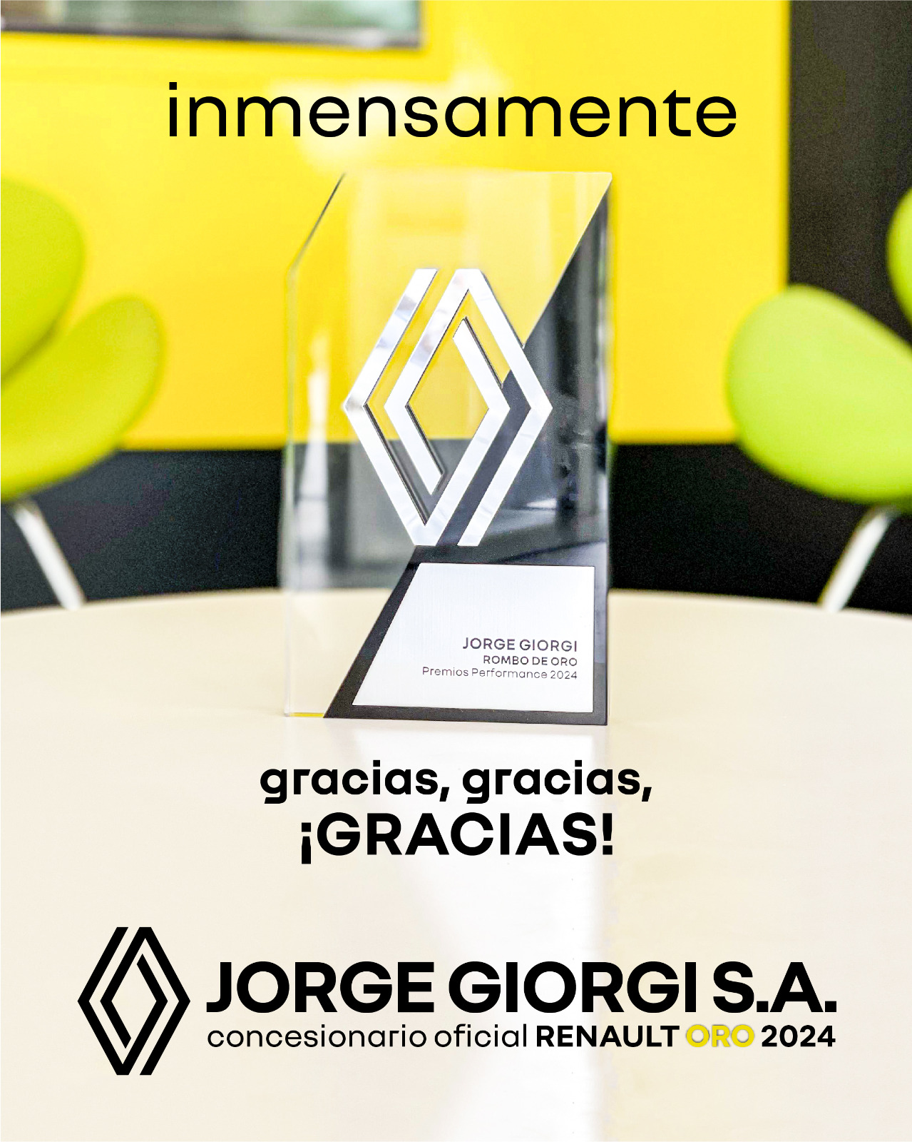 En el día de ayer JORGE GIORGI S.A. fue galardonado con la mayor de las distinciones otorgadas por la Marca a la red de concesionarios Renault.