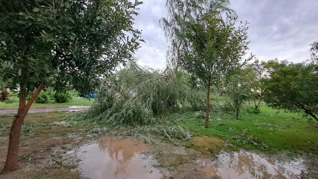 La localidad de Colonia Barge también sufrió los embates de la tormenta, con gran cantidad de lluvia caída, granizo y fuertes ráfagas de viento.