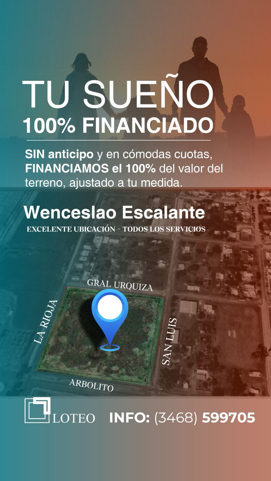 El área comercial de Fragar te brinda la oportunidad de adquirir tu terreno sin entrega y 100% financiado, hasta en 36 cuotas. Los mismos están ubicados en el sector noreste de Wenceslao Escalante.