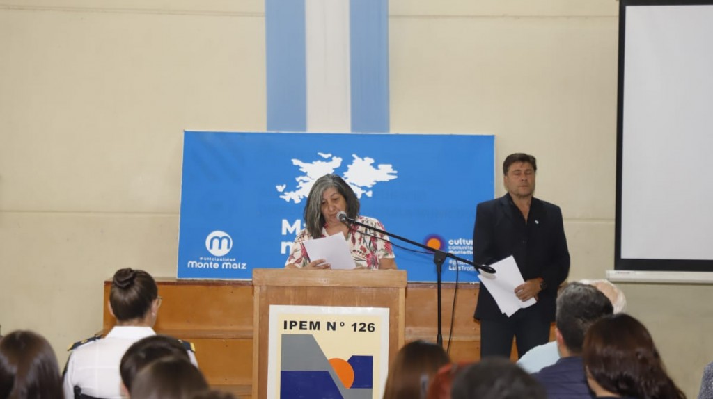 La periodista y escritora Aracely Maldonado, oriunda de Isla Verde, aunque radicada desde hace mucho tiempo en Córdoba, estuvo en el acto oficial por el Día del Veterano de Guerra y los Caídos en Malvinas. El mismo tuvo lugar en el SUM del IPEM Nº126 Ada Eva Simonetta y allí, fue una de las oradoras.