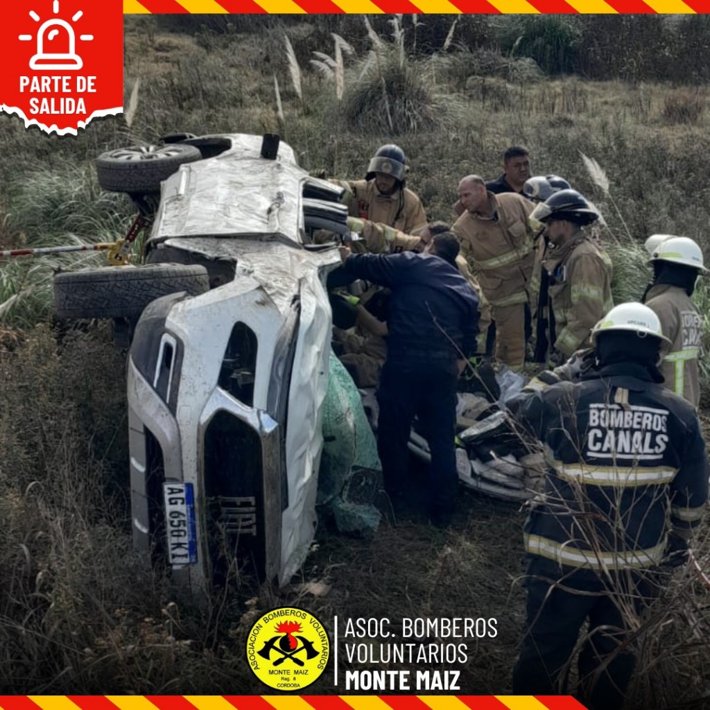 Por causas que se tratan de establecer, el conductor del rodado perdió el control, despistando y volcando, quedando la camioneta volcada del lado del conductor. El mismo fue trasladado por bomberos de Monte Maíz al Nosocomio anteriormente mencionado y presentaba lesiones graves. Fracturas de brazo y costillas y posible fractura de clavícula.