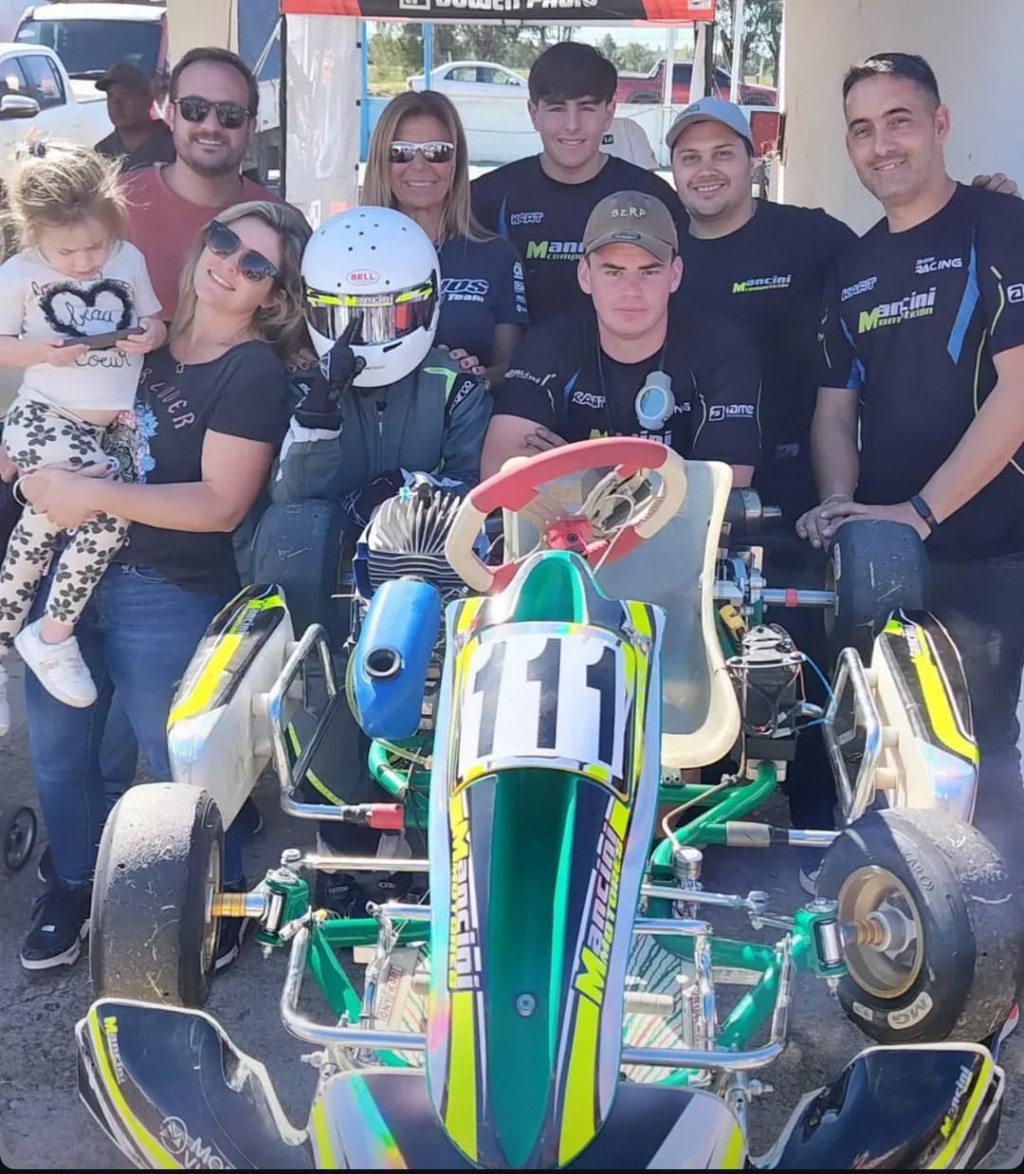 AGUSTIN BADINO (#67) con el equipo (Badino kart competición). en la monomarca 110 cc se quedó con todo este fin de semana. Clasificación, Serie única y la Final con un andar contundente hasta que se bajó la bandera a cuadros llevándose la final.
