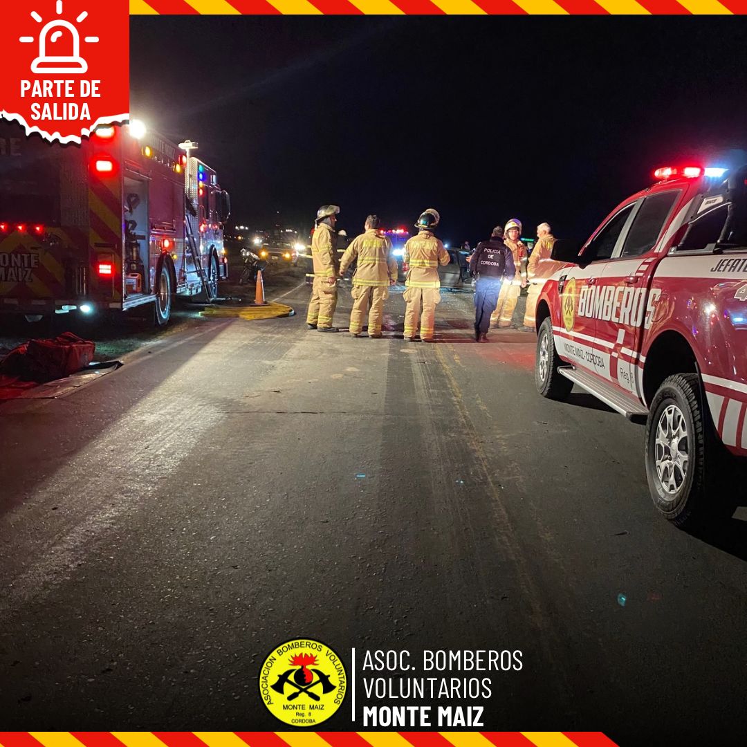 Se recibe llamada solicitando presencia de bomberos voluntarios por colisión entre dos automóviles. Al arribo de las dotaciones se procede a la inmovilizacion y posterior traslado con prioridad de masculino mayor de edad con traumatismos varios al hospital de Monte Maiz, ocupante de uno de los rodados. Mientras que al masculino mayor de edad ocupante del otro rodado fue trasladado por empresa RE emergencia al hospital de Laborde.