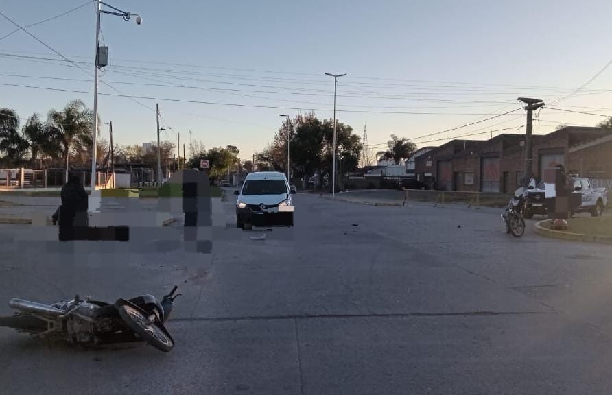 Personal policial interviene en accidente de tránsito tras alerta al número de emergencias, en intersección de Bv. Unión y Belgrano, donde por causas a establecer un vehículo tipo utilitario marcar Renault Kangoo conducido por un ciudadano de 55 años de edad, colisiona contra a una motocicleta marca Guerrero Trip conducida por una ciudadana de 52 años de edad, a raíz del impacto la conductora del rodado menor es trasladada hacia el hospital Dr. José A. Ceballos para su atención, siéndole diagnosticado lesiones de carácter graves (Fractura de tibia y peroné), se entregan actuaciones en sede judicial.