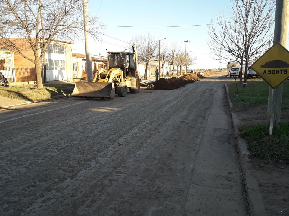 La empresa Gas de Monte Maíz S.A. está realizando una importante obra de ampliación de la red cloacal en B° IPV Camila Bovo ubicado hacia el sector sur de la localidad.