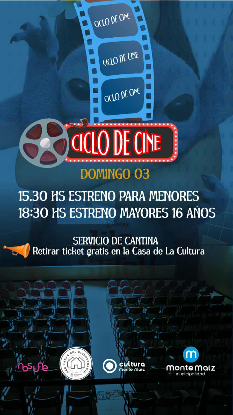 La municipalidad de Monte Maíz continúa con el ciclo de cine en la Casa de la Historia y la Cultura del Bicentenario. Tal iniciativa comenzó en el último fin de semana de vacaciones de invierno con muy buena aceptación dentro de los vecinos de nuestra localidad.