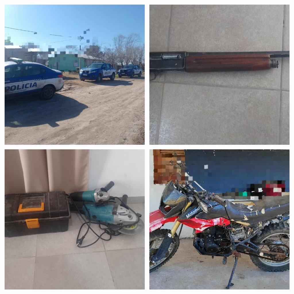 Canals, Córdoba – Tras una investigación por un hecho contra la propiedad, la policía allanó una vivienda en calle Los Andes, recuperando un televisor LED, una motocicleta Motomel Skua 200cc. con pedido de secuestro en Río Cuarto, una escopeta Browning cal. 16, dos motoguadañas, una motosierra, dos amoladoras y varias herramientas de mano. Los elementos están relacionados con denuncias de robos en la dependencia policial local.