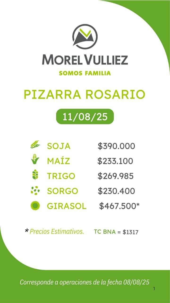 Morel Vulliez S.A. ha publicado sus precios actualizados para la campaña 2025/2026, ofreciendo una visión clara de las tendencias del mercado de granos. Los precios, con fecha del 11 de agosto de 2025, muestran las siguientes cotizaciones: