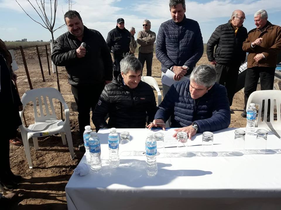 En el marco de la inauguración del sistema de bombeo de la laguna “La Salada” se firmaron convenios con el Gobierno Provincial para dos obras de canalización en zona rural ubicada al Norte de Monte Maíz. Obras que serán ejecutadas también por el Consorcio Canalero Sigfrido Vogel y cuya inversión demandará $19.000.000 aproximadamente.