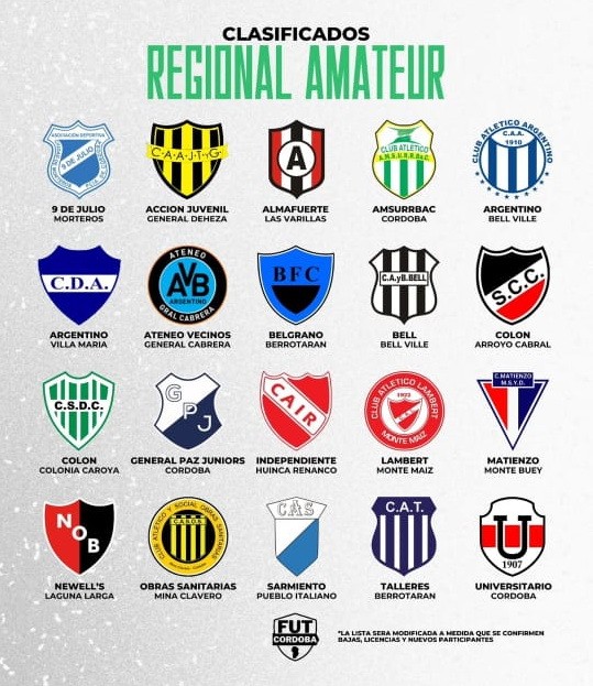 Estos son los clubes cordobeses con cupos para participar en el Torneo Regional Amateur, temporada 2025/26.