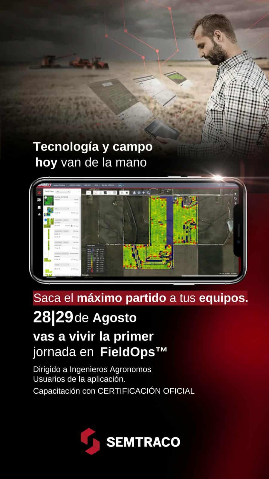 Semtraco anuncia una nueva capacitación sobre FieldOps, la plataforma digital de Case IH que permite monitorear, gestionar y conectar toda la operación agrícola en un solo lugar. La capacitación se dictará los días 28 y 29 de agosto en las instalaciones de Semtraco.