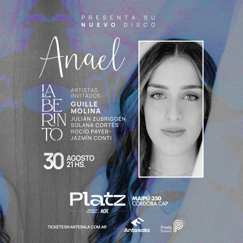 La talentosa cantante Anael, oriunda de Monte Maíz, se prepara para presentar su primer disco de estudio, titulado "Laberinto", este sábado 30 de agosto en Platz, Córdoba. "Laberinto" cuenta con 10 temas, 8 de autoría propia y 2 covers reversionados.